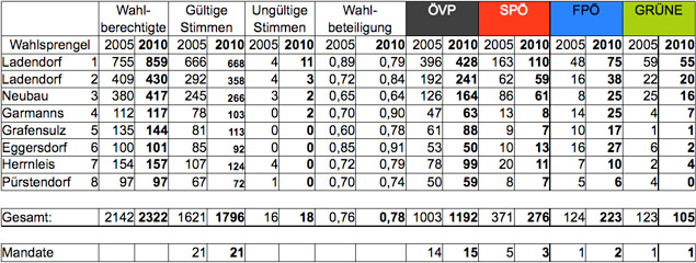 Wahlergebnisse der Gemeinderatswahl vom 14. 3. 2010