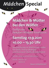 Der Mädchentag ist eine Veranstaltung, die seit Juli 2010 erfolgreich von Susanne Schmid, Susanne Loibl, Beatrix Harrer, Magdalena Frey geleitet wird. Weitere Informationen darüber finden Sie im Bereich Texte links und im Grünspecht Ausgabe 3/2010 (pdf).